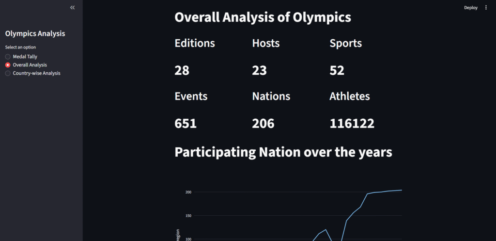 Analyzed Olympics dataset to uncover trends in athlete performance, medal distribution, and country-wise participation using data visualization and statistical techniques.